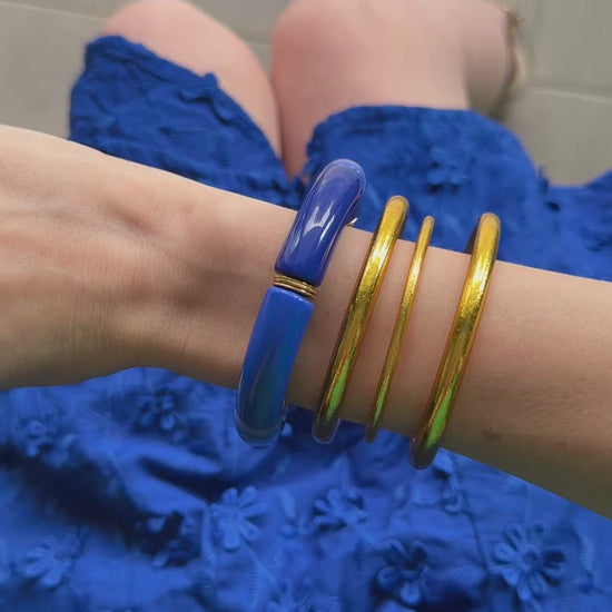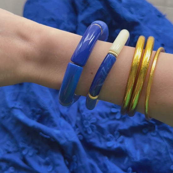 - Bracelet composé de 6 perles tubes acryliques.