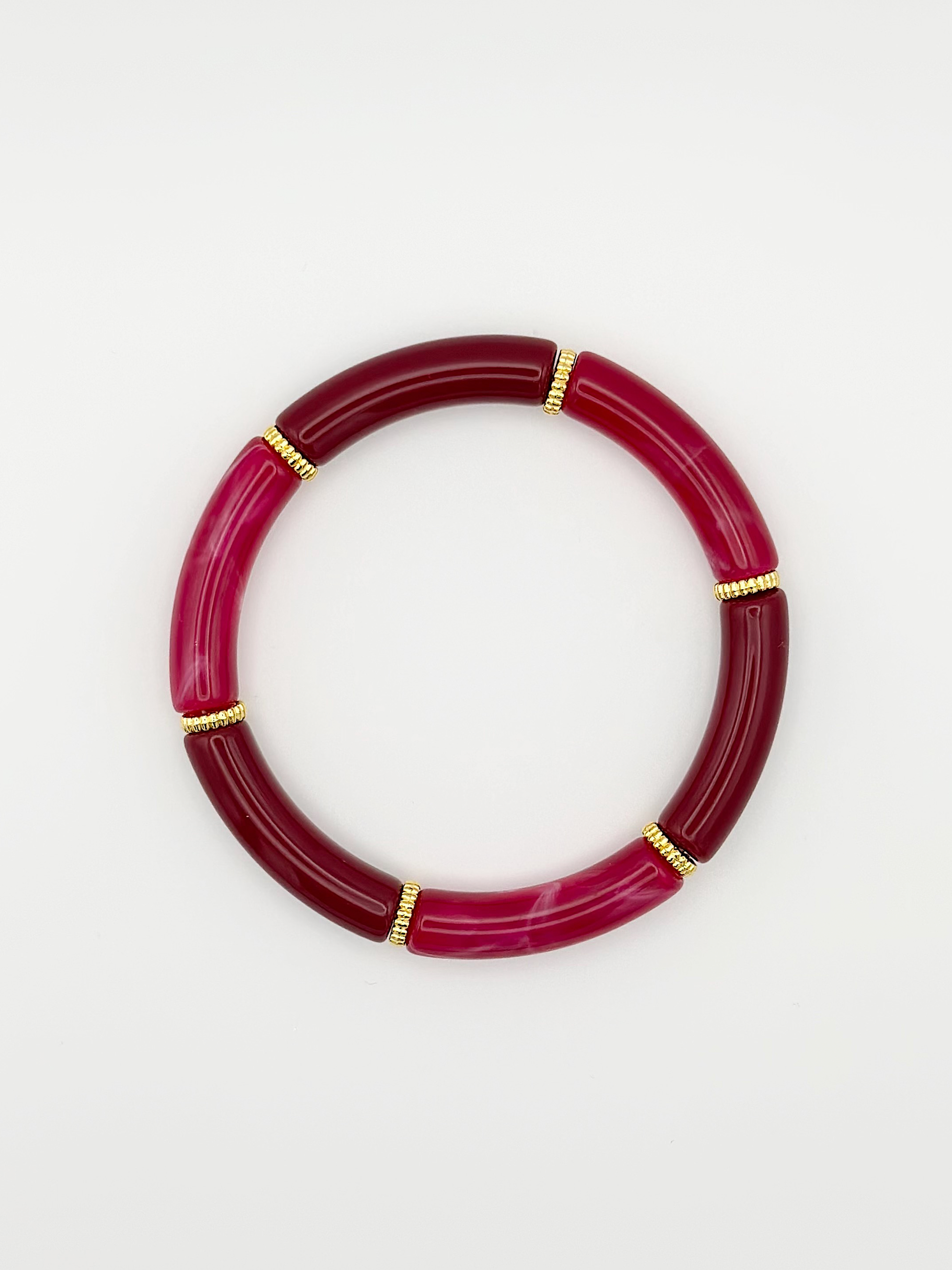 - Bracelet composé de 6 perles tubes acryliques.