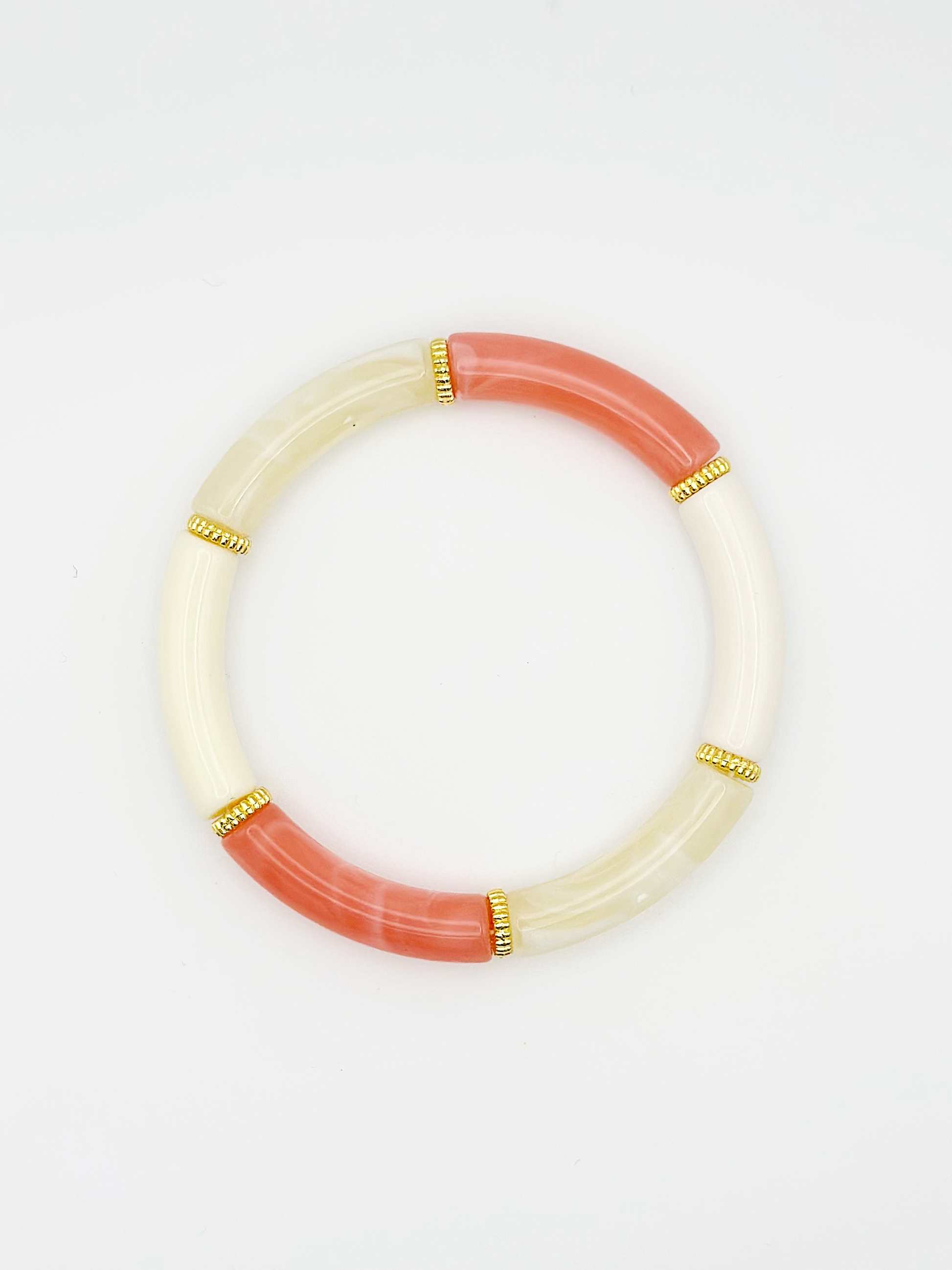 - Bracelet composé de 6 perles tubes acryliques.